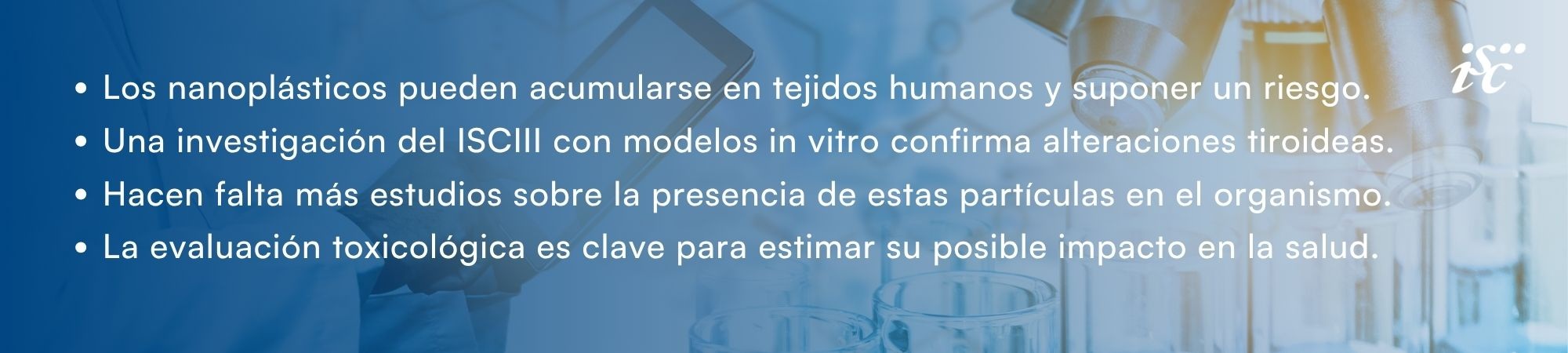 Un equipo multidisciplinar del Instituto de Salud Carlos III (ISCIII) ha identificado por primera vez, en estudios in vitro en modelos celulares y moleculares, los mecanismos mediante los cuales los nanoplásticos alteran la función tiroidea. Estas alteraciones, dependiendo del tiempo y de los niveles de exposición, podrían suponer riesgos para la salud. El estudio, publicado en la revista Journal of Hazardous Materials, está liderado desde el Centro Nacional de Sanidad Ambiental (CNSA) y la Unidad Funcional de Investigación en Enfermedades Crónicas (UFIEC) por los investigadores Mónica Torres Ruiz (CNSA) y Antonio De la Vieja (UFIEC).
